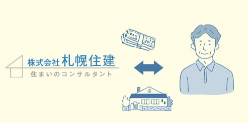 当社・札幌住建が買い取るため、仲介手数料は発生いたしません。つまり、査定額から手数料がひかれることがない分、高額でのお支払いが可能です。